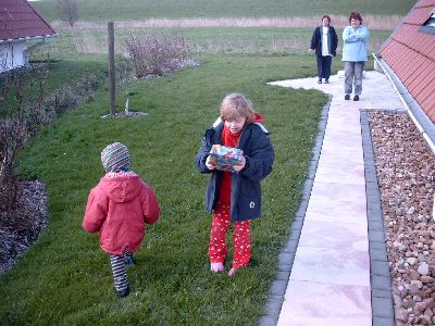 Hier sind wir auf der Suche, ob es hier auch einen Osterhasen gibt...