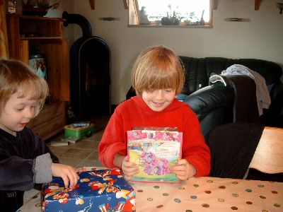 Alles gut verpackt. Doch mit Mamas Hilfe kommt das Pferd zum Vorschein.
