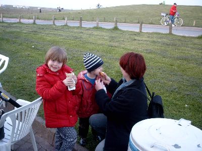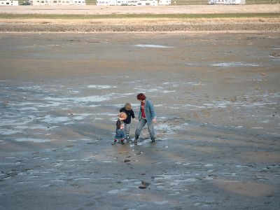 Papa muß in den sauren Apfel beißen, und die 3 Wattwanderer "retten"