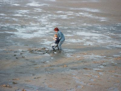 wir graben uns langsam aber sicher ins Watt!!! Papa, wie sehen meine Gummistiefel aus??